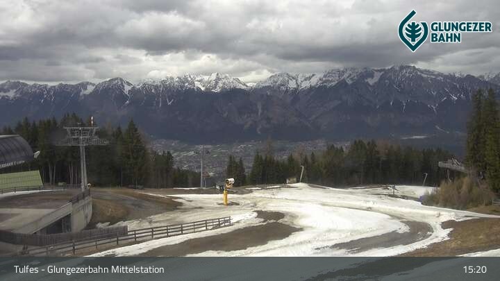 Archiviertes Webcam Bild: Tulfes: Mittelstation Glungezer Video-Webcam am 13.04.2026 um 15:04 Uhr Aktuell