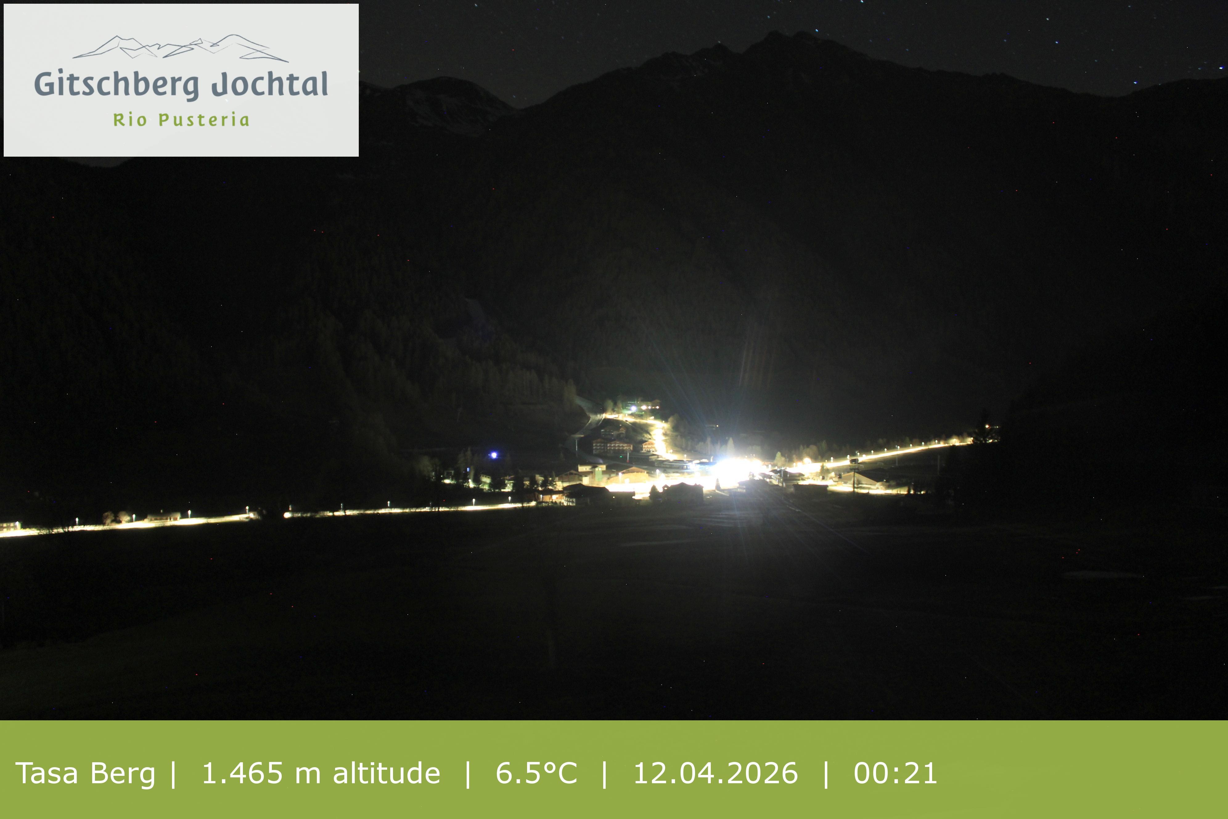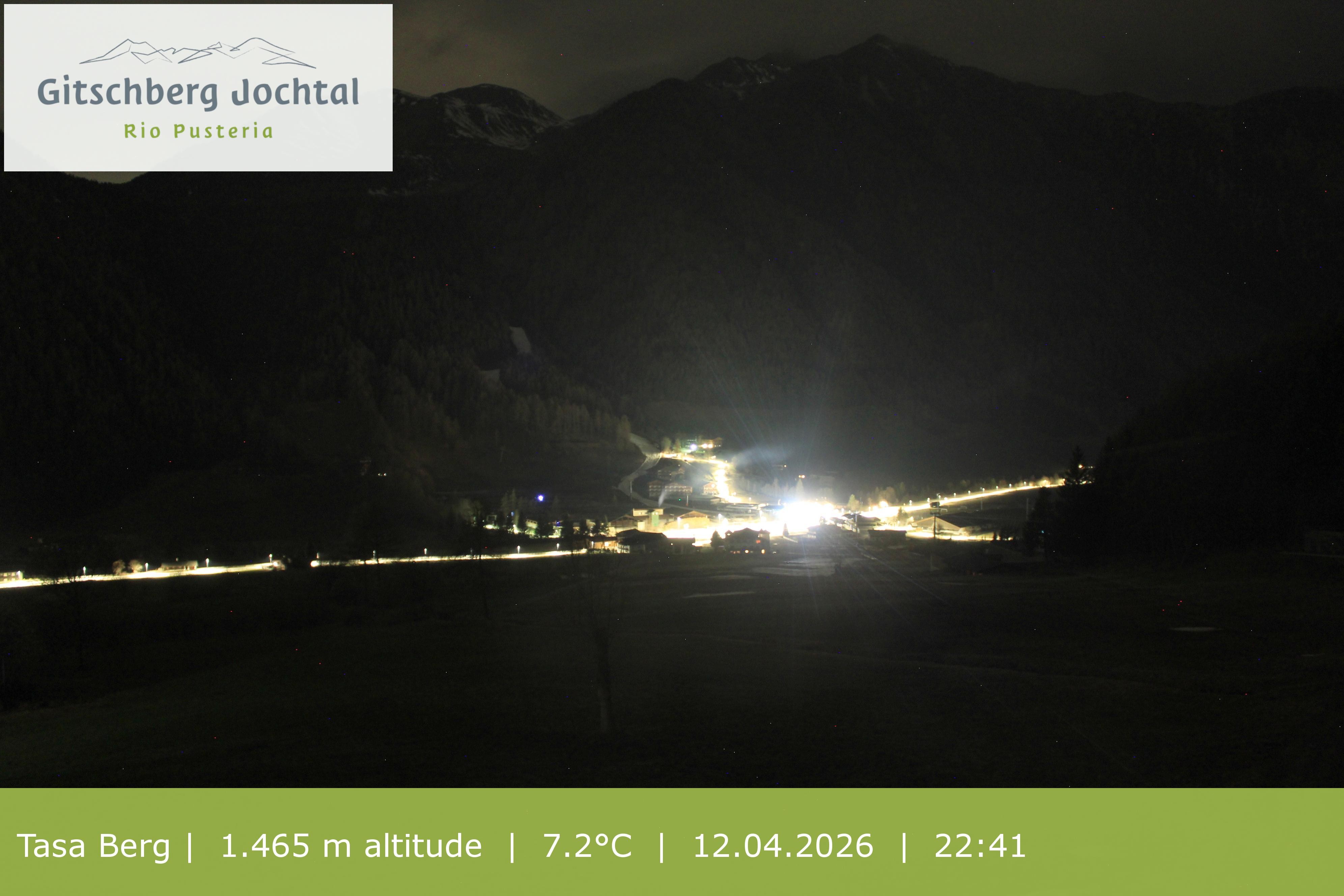Archiviertes Webcam Bild: Gitschberg Jochtal: Blick auf die Mittelstation Schilling am 12.04.2026 um 22:34 Uhr Aktuell