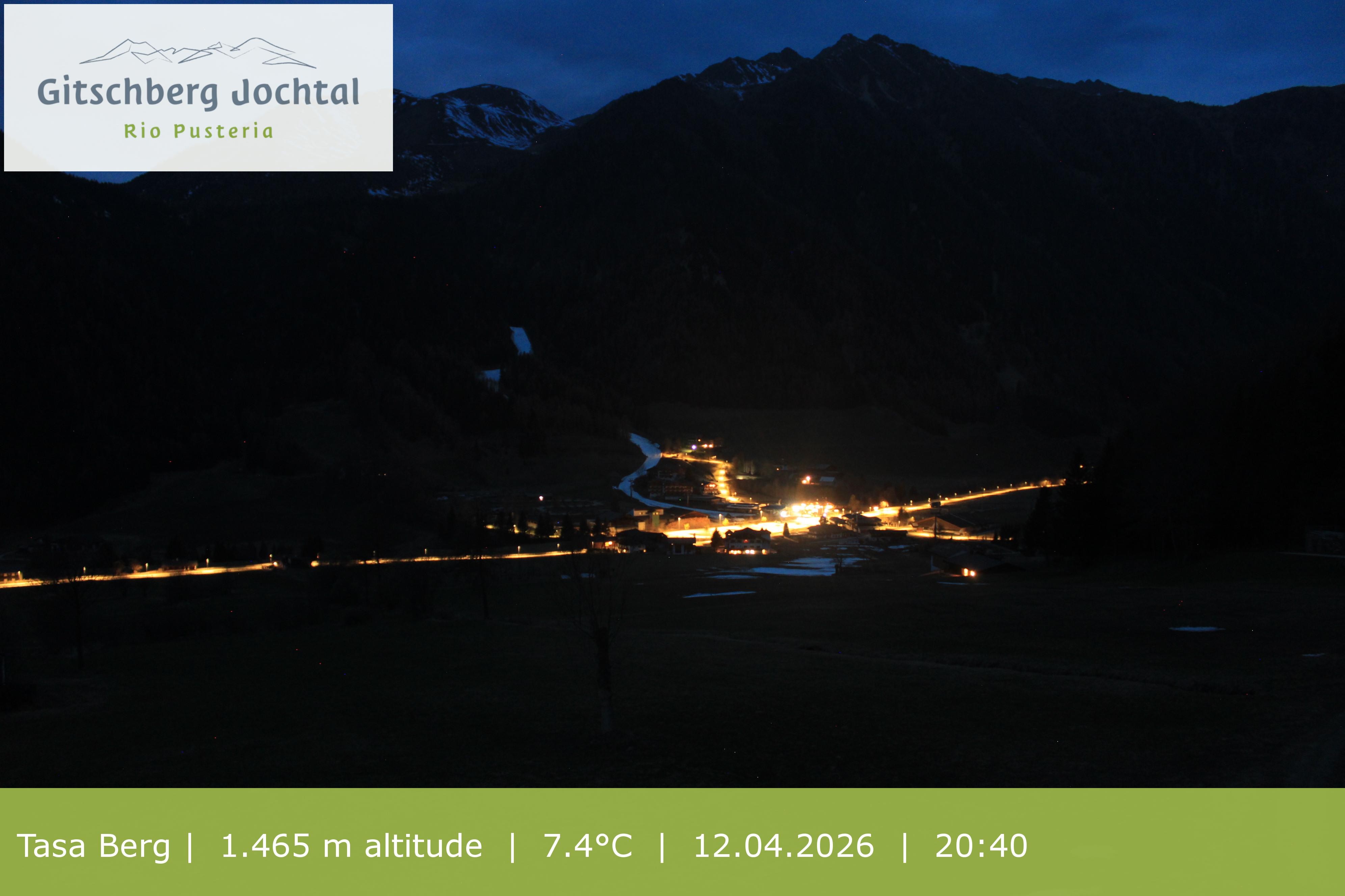 Archiviertes Webcam Bild: Gitschberg Jochtal: Blick auf die Mittelstation Schilling am 12.04.2026 um 20:34 Uhr 20:00
