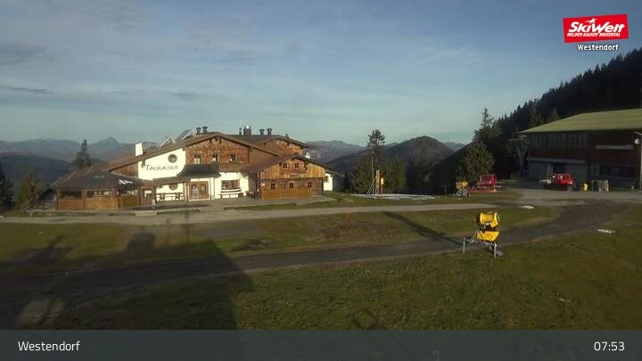 Die Webcam befindet sich in Westendorf in der SkiWelt Wilder Kaiser - Brixental. Sie zeigt die Teile der Talkaserbahn und Talkaserabfahrt sowie das Restaurant Talkaser.