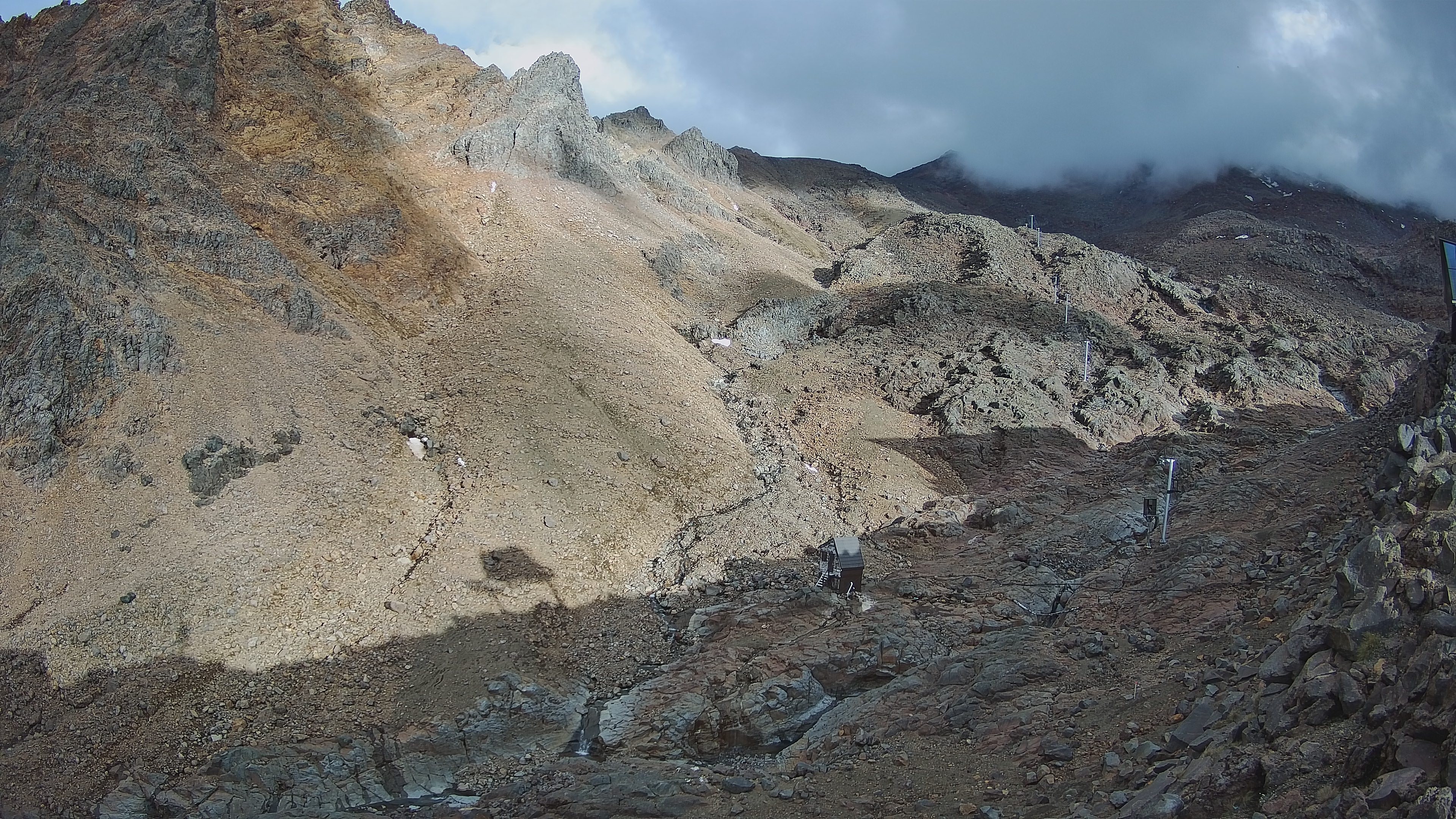 Ausblick auf den Berg Te Heuheu im Skigebiet Whakapapa. Die Webcam ist nahe der Bergstation des Sessellifts 'Waterfall Express Chair' angebracht.